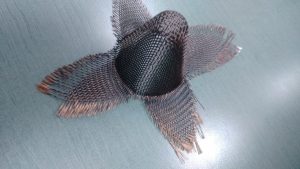 metal. The integrity of the weave pattern is maintained by the use of an organic resin or ceramic coating, and by